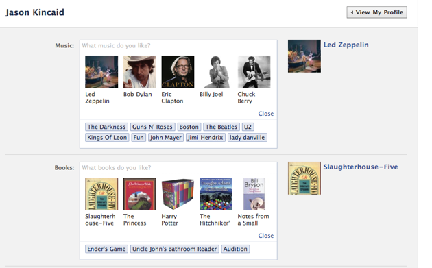 Fortunately, you don’t have to tell the world you’re an avid fan of cheesy rock band The Darkness as soon as they hit your profile page — you get to manually sort which interests will appear as images, and which are hidden (though still accessible) under the ‘more’ tab.