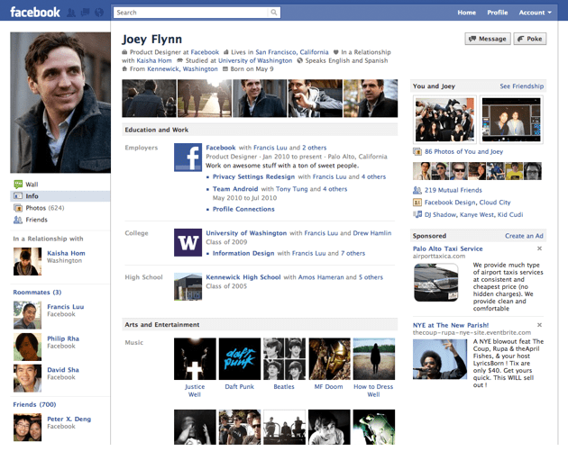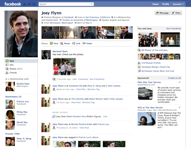 Some other smaller changes: Messages and Pokes are now more prominently featured toward the top of the page. And there’s a link to your ‘friendship page‘ featured on the right side of the screen as well (this feature was recently released, and was harder to find).