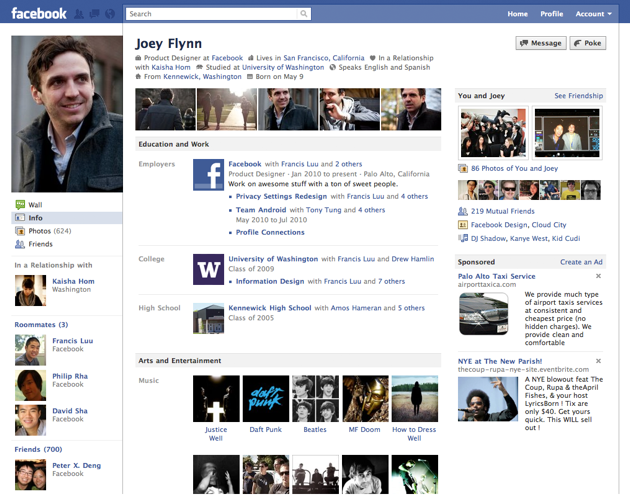 There are two big themes to the revamped design: a bigger emphasis on keeping things visually interesting, and streamlining the design to make it easier to find information people actually care about. Facebook Product Manager Peter Deng explains that on the old profiles, some of the most popular features and information has been a pain to find — the ‘View more photos’ link, for example, is immensely popular, but it’s been nestled between far less important links for years.