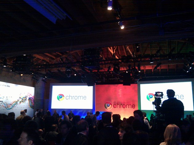 Brian Rakowski has taken the stage. Showing off Google instant baked into the omnibar — type in a letter, and it goes to the page you visit most often that begins with that letter (looks quite slick). Also showing off PDF reader that’s baked into Chrome. Now he’s showing off the 3D capabilities of WebGL. 3D fish demo, a nifty body browser… “It’s all really really fast”.