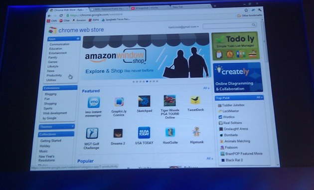 Showing off the Web Store interface. Looks A LOT like iTunes app store (which makes sense — they’re giving users what they’re used to).