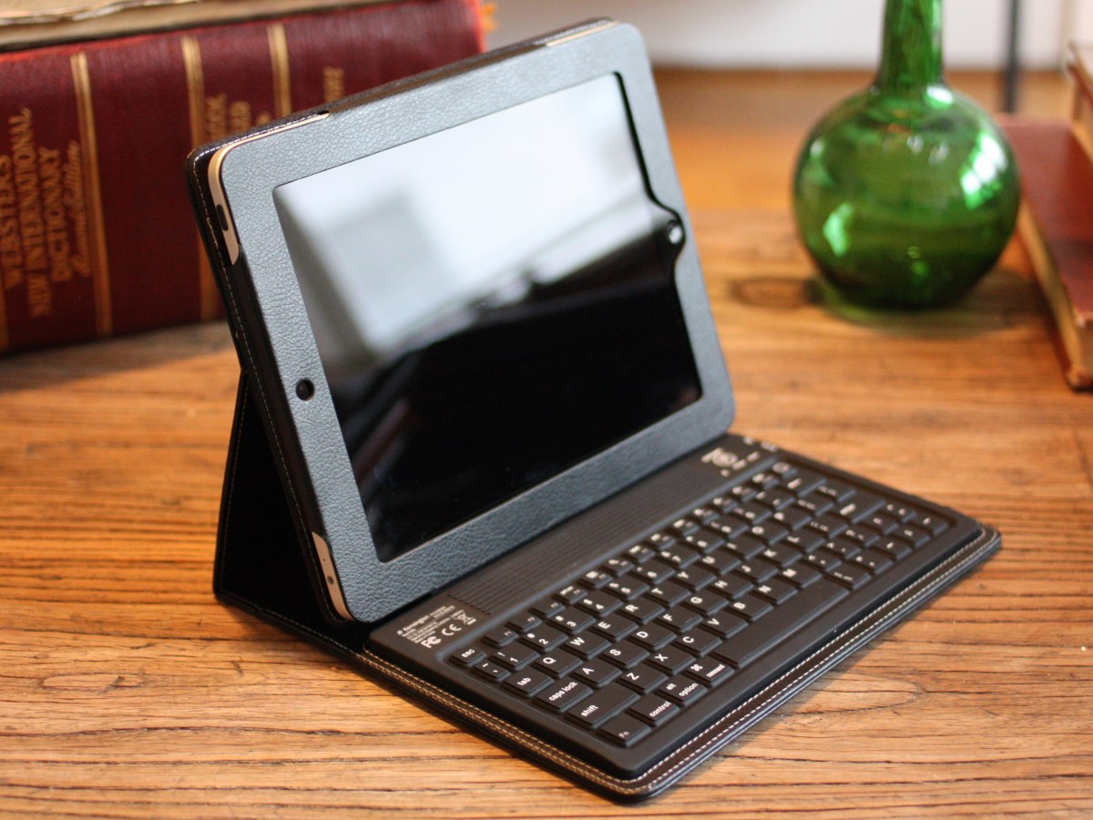 An expensive little bugger, but after all it does include an actual Bluetooth keyboard. The case itself is very well-made and leathery, with a good amount of padding. The keyboard is a bit small, as you might imagine, and a few of the keys have been relocated in irritating ways. It also takes almost no pressure to hit the keys, which some may like and others hate. It’s easy to set up, though, and more comfortable to write long emails on than the on-screen keyboard.
