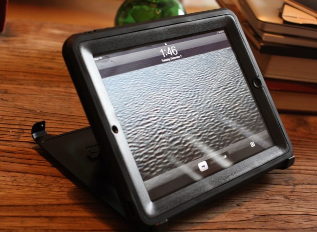 This thing is great. It takes forever to successfully get your iPad into, and I nearly broke myself trying to get it out, but it’s solid as hell, has a thick rubberized border covering all the buttons (you can still use them, of course) and ports (you can easily uncover them). It would actually protect your iPad from quite a lot of danger, and the clip-on cover doubles as a stand. What’s not to like? Well, it’s kind of expensive. But it’s worth it.