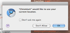 The description clarifies it a bit more: “Includes using operating system location APIs (where available), and sending additional local network configuration data to the Google location service to provide higher accuracy positioning.” Obviously, that last bit is particularly interesting. Clearly, Google hopes to improve location accuracy within the browser — a problem since most of it is drawn from WiFi triangulation data rather than GPS (which most computers don’t have). But it would seem that they also mean to build out their own location database and services with the data they collect from this feature in Chrome.