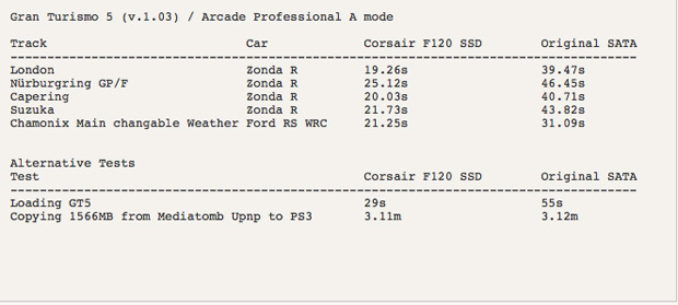 The only way you’re able to install an SSD into your PS3 is if you have an old school “fat” PS3. A user on the Beyond3d forums stuck a Corsair F120 in there, and saw his Gran Turismo 5 load times plummet, sometimes by as much a 50 percent. That’s nothing to sneeze at, particularly if you’re not keen on waiting upwards of 30 seconds for the Nürburgring to load.