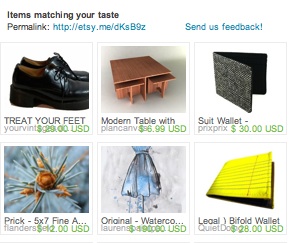 This is just an experiment for Etsy, but it’s a fun way to find new products. And if you can’t find anything there, try the Hunch Gift-O-Matic.