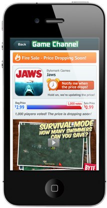 First up in Fire Sale is Jaws, the official game based on the original summer blockbuster movie, from Bytemark Games. Game Channel will also include Free Game of the Day, which makes one game free for a day.