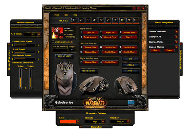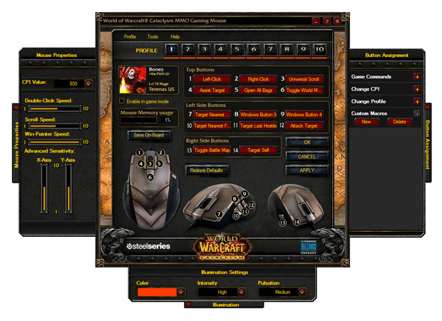 Why have so many buttons on a mouse? MMO players know that to effectively control your toon you need to be cognizant of approximately 900 keyboard and mouse combination, with shift- and alt- modifiers further complicating matters. Anyone who’s sunk any amount of time into games like WoW will no doubt have gotten the hang of it, but it’s nothing something you can pick up in an afternoon. (Blizzard said in a recent interview with Edge magazine that a full 50 percent of people who play the free 10-day WoW trial don’t make it past level 10. These games take time and dedication to play, let alone play well.) If you can offload some of the less cerebral commands from the keyboard to the mouse you’ll have made the game slightly less confusing to play.