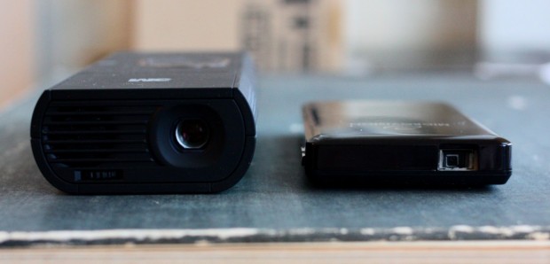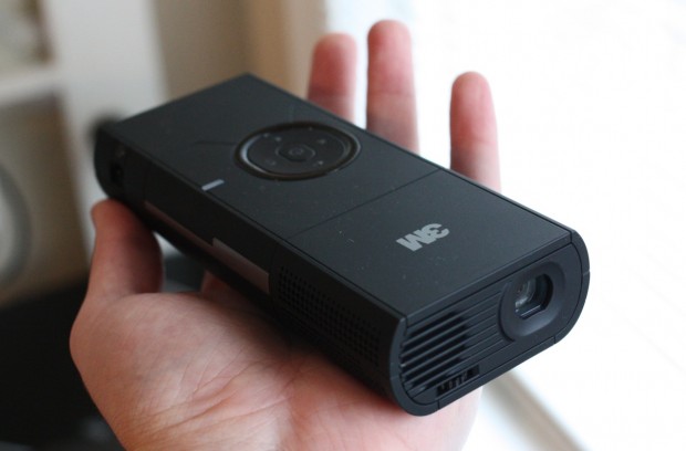 Short version: 3M’s MPro series puts on a little weight! It’s still smaller than a regular projector, but it’s chunkier than every pico projector out there. But it’s also bright and well-built. If you’re not bothered by its girth, this is a great option, though the whole class of devices is still pretty expensive.