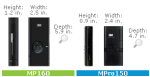 The original MPro120 was quite petite, but somewhat dim. The followup MPro150 had internal file support, but was somewhat bigger. Now we have this one, bigger than the rest, but with a much brighter image (the 180 will add file playback and a touchscreen). The size has increased from… well, 3M has a handy little chart to show you the exact measurements:
