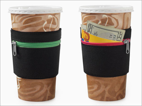Designed as a reusable sleve for a coffee cup, RuMe added a useful zippered pocket so the cuff also functions as a safe, secure armband cash wallet. Now you can walk, jog, rollerbalde to the coffee shop with cash, cards & keys tucked safely inside! Every year more than a billion disposable coffee sleeves are discarded, and the sturdy, tight-fitting elastic not only makes a better sleeve for that hot latte, but is an incredibly easy way to reduce waste. Choose: Fuchsia, Grass, Indigo, Black, Tangerine or Lemon.