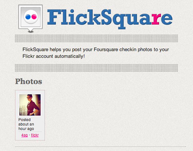 Inspired by a tweet from First Round Capital VC Charlie O’Donnell (“Can someone hack a Foursquare app that cc’s my checkin photos to Flickr?”), developer Benny Wong has created Flicksquare, an app that takes advantage of Foursquare’s recent enabling of photo check-in features, allowing you to also send your Foursquare photos to Flickr.