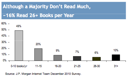 The Kindle appeals to heavy readers. Bookworms are a niche audience, but a lucrative one. About half of the people surveyed read between zero and ten books a year. But 16 percent read more than 25 books a year.