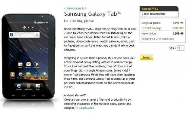 Sprint has only had the Samsung Galaxy Tab out since November 14th, yet is already slashing its price. Perhaps the huge amount of tablets announced at CES has something to do with the price adjustment. That or the fact that when Honeycomb comes out, the Tab will be obsolete. Besides it’s not that much to make.