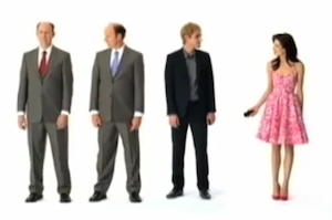 Below, check out their new ad in true Apple-mocking style (similar to a previous one they did making fun of the iPhone for being on AT&T’s network). They’re calling this new ad “Identity”. It features the same attractive woman (T-Mobile), hip guy (iPhone 4) and corporate man (AT&T) from the other ad. But this time there’s a second corporate guy to represent Verizon (he has the red tie, AT&T has a blue tie, get it?). Cute.
