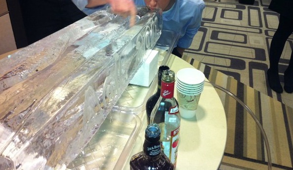So while the news today was about how AOL is outsourcing sports, health, and real estate—some of the content areas where it is not so strong—the bigger strategy revolves around these goals. While there was no other information in the package other than the cards and the globes, it seems clear to me that these are very much stretch goals but ones worth striving for. In case you have trouble reading the goals in the photo above, here they are—and below that another interpretation of the Winter Luge at an AOL party (photo cropped to protect the not-so-innocent, but note the “AOL 2011” engraved into the side of the ice luge):