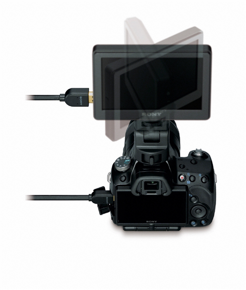 The screen can be attached to “most” interchangeable lens cameras and compatible HD camcorders with an auto-lock accessory shoe or ISO shoe through an adaptor (which Sony throws in). It connects to other devices via HDMI and tilts and swivels “to any angle”.