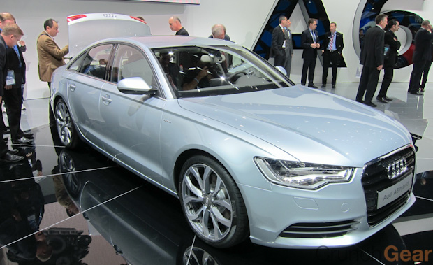 Some really neat tech features on the A6 are the optional MMI navigation with MMI touch, which we covered late last year, GPS based headlights (see video below), and the heads-up display, new to Audi and not on the 2011 A8. The heads-up display will feature a number of customizable features, and is placed far out onto the road, such that drivers won’t have to refocus on the content. I’m personally excited about heads-up display and want to see more vehicles adopt this drive-style innovation. The A6 Hybrid will certainly come to the US. In fact, I’d put money on it that the A6 Hybrid was made just for the US. Everywhere else they accept the not dirty, but clean, D-word.