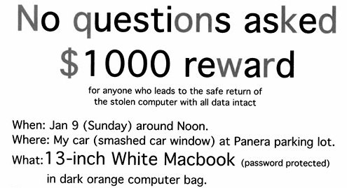 Attention seedy underbelly of Oklahoma. If you happen to be moving any hot laptops, please check if one of them is this white MacBook, full of prostate cancer research data, stolen from a medical researcher’s car. There’s a reward (contact details at the link) and it’s the right thing to do.