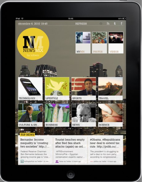 Sobees has made a business of creating innovative social media clients, particularly focusing on bringing Twitter, Facebook and social search to the a variety of platforms. Today, the developer is getting into the news business with the launch of NewsMix, an iPad app which presents news and content shared by your social circle in a magazine format on the device.