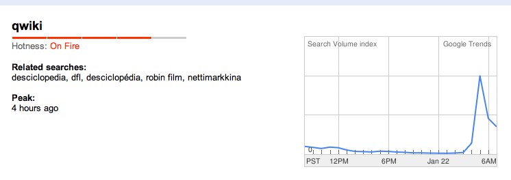 Buoyed by news that early Facebook co-founder Eduardo Saverin led an $8 million investment in the startup, TechCrunch Disrupt winner and visual search startup Qwiki has hit no.1 on Google Trends ‘Hot Searches’ in the U.S. That’s a pretty impressive feat for a startup that was virtually unknown six months ago. And the company is still in private alpha.