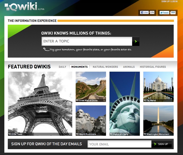 Heralding itself as an “information experience,” Qwiki has about 3 million reference topics at the time of its launch and hundreds of thousands of users according to a release. In testament to its success building buzz pre-launch, it was “spoof” cloned over the weekend using only 321 lines of code.
