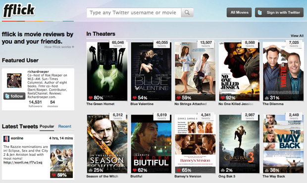 At this point it’s unclear if Google intends to keep fflick alive, or if this is primarily about the startup’s talent and the sentiment analysis engine that drives its recommendations. The service is pretty straightfoward: you sign in with your Twitter account and are shown a list of top-ranking movies. Next to each film is a set of relevant tweets from the people you follow. You can also choose to browse by sentiment, viewing a stream of positive or negative tweets about each movie.