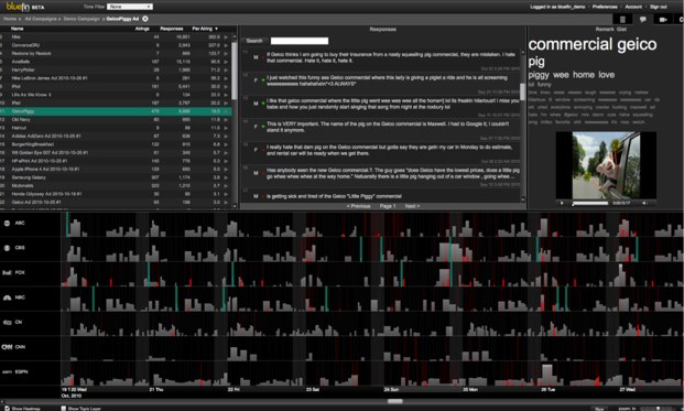 Bluefin is “treating social media like clickstreams: It determines when somebody is talking about a particular show or ad on TV using its language learning and semantic analysis engine, and then creates an implicit link to that content in its database. It is taking social media and mass media and mixing them together.