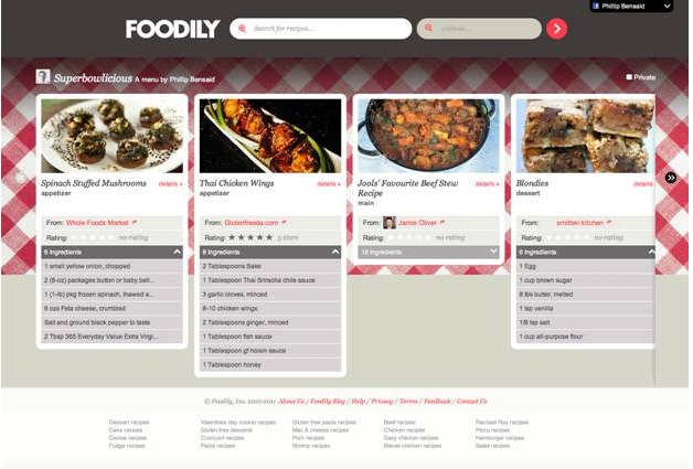 Through an integration with Facebook, recipes “liked” on Foodily will appear in your Facebook feed, and recipes your friends like will appear in your Foodily recipe search. Foodily also will allows anyone to create a Facebook event invitation that includes a menu, allowing friends to see what dishes are planned for events like dinner parties or pot lucks. Friends can comment on the menu, share their feedback and add additional dishes they want to bring.