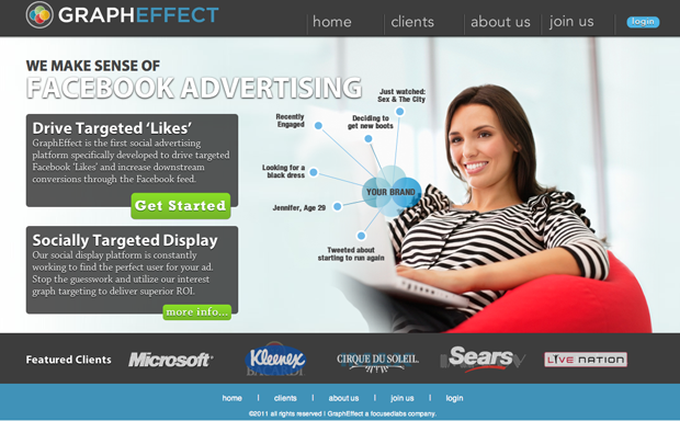GraphEffect helps brands and agencies leverage Facebook for advertising and lead generation purposes. The company, formerly called Focused Labs, relies on social performance algorithms to target Facebook ad campaigns, increase user engagement with Facebook fan pages and increase downstream conversions through the Facebook feed.