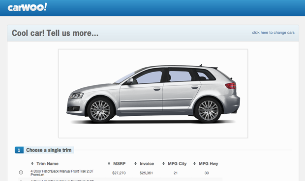Carwoo has $6 million in funding from Y Combinator, Interwest, and notable angels like Paul Buchheit, Joshua Schachter and Aydin Senkut. In order to celebrate the release of CarWoo Version 2, CarWoo will be making their $19 basic plan free (which guarantees that 2-3 dealers will bid for your purchase) for the month of February.