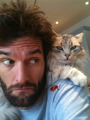 Red Bull Racing’s “number two driver,” Mark Webber, seen here with a cat, has just about had enough of technology ruining all the fun of Formula One racing. Several new systems have been put in place in many of the cars this year, but the systems go overboard with the technology, apparently. Not only that, but the reliance on all this technology may be distracting, as Webber says drivers ought to be 100 percent focused on the road, but now they’re practically being asked to jailbreak their car while trying not to veer off into the gravel.