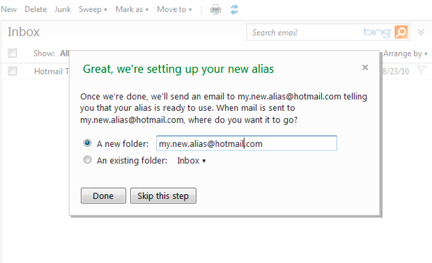 Ever wished you could have multiple email addresses that all routed to the same inbox, without having to set up a bunch of different accounts and forwarding options? Hotmail — yes, the email service you probably haven’t looked at in years — has just added a very handy new alias feature that lets you do just this. In other words, I can now setup a Hotmail inbox that lets me seamlessly handle correspondence to both jasonkincaid@hotmail.com and JediMasterJ@hotmail.com from the same inbox — woohoo!*