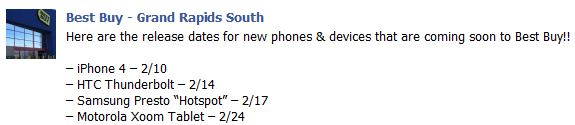 The Motorola Xoom has made the rounds to various events, but Moto has yet to reveal the price or release date. But a Grand Rapids, Michigan Best Buy might have just ruined the surprise party. According to a post on their Facebook page, the tablet will hit their store on the 2/24. Now this doesn’t specifically mean that the Xoom’s official release date is the same as Verizon stores could get it a bit earlier, but at least it’s coming this month. For how much, though?
