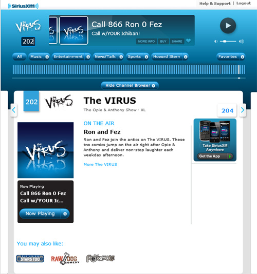 The new player will take some getting used to, but thankfully there’s a handy tutorial to teach us how to make our way around it. (The embedded video shows off the tutorial. If there’s an ad there, don’t yell at me; I’m not in charge of that type of thing.) Nice to see Howard Stern so prominently featured—there’s an entire button dedicated to the man! News, Talk, Entertainment, Sport, HOWARD STERN.