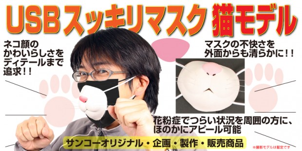 We haven’t covered anything coming from Tokyo-based crazy accessory maker Thanko in a while. But yesterday, the company started selling its newest super-silly USB gadget: an allergy mask [JP] that not only will make the wearer look like a “cat” (well, kind of) but also comes with a built-in mini fan (see picture below).