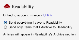 And there’s an option when you link your accounts to send everything you save on Instapaper to Readability or to only send items you archive to Readability. That’s also interesting. It gives you a way to selectively pay certain publishers/authors.