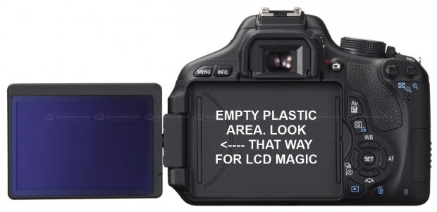 The T3i and T3 also have aliases, as per the Canon usual: 600D and 1100D respectively. And as usual, you’d expect the big number to be the superior item, but as usual, no. Details! Inside!