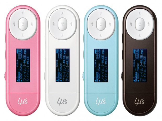 The i.μ’s HMP-S104, the more basic of the two devices, comes with a small screen (128×64 dots) and a USB port. It will be available in the colors you see on the pictures below (price: $49).