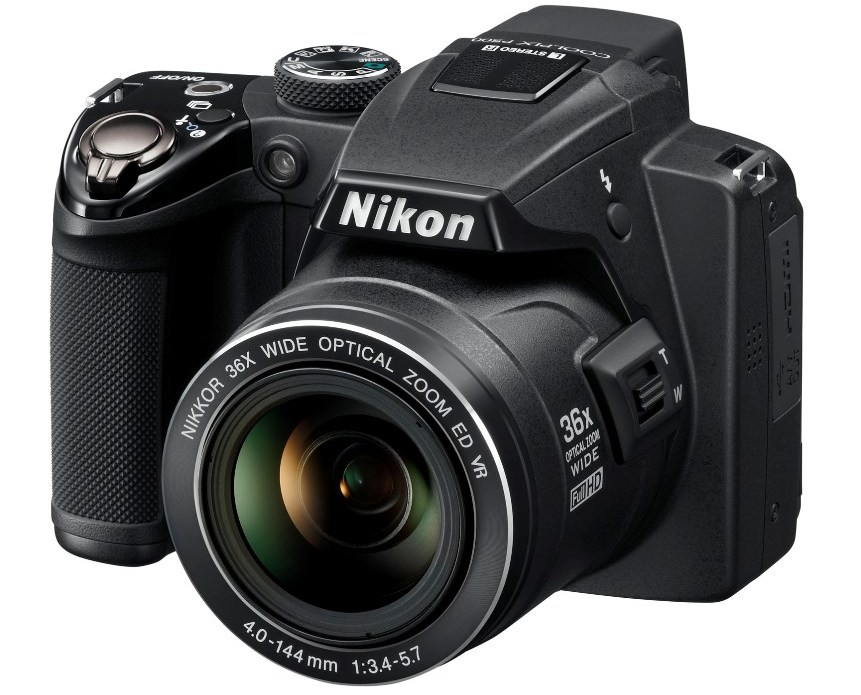 The P500 ($400) is your DSLR-lookalike megazoom. It has a 36x optical zoom, takes 12.1 megapixel shots, and can do 1080p. It’s got vibration reduction and image stabilization, two different things I guess, both of which you’ll need if you’re planning on taking pictures at 36x zoom.
