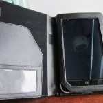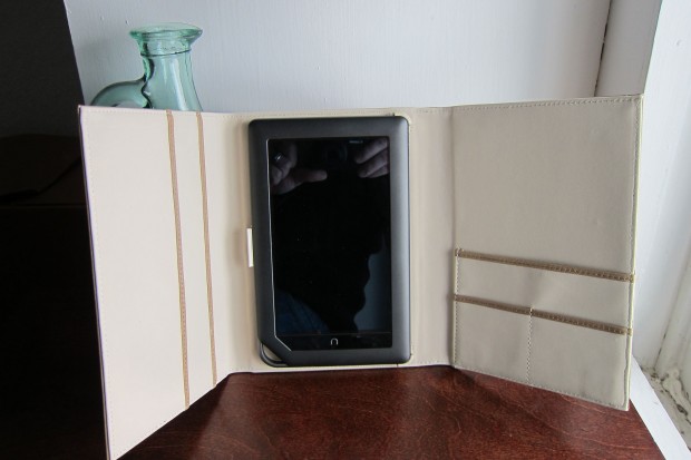 Think of this case a monstrous trifold wallet. It’s a lot like that with little pockets and sleeves on every flap — good for some but could certainly be unnecessary bulk for others. The case uses the same sort of plastic tabs as the Montgomery Cover above, which seem to suspend the Nook Color in the middle of the case. The leather is soft, the design is clever. I’m a big fan and it’s not a bad price either at $49.99.