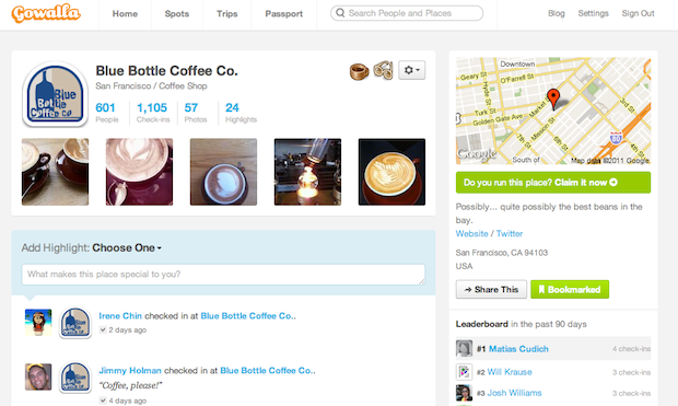 Gowalla has just rolled out a batch of updates to their website today that enhance usability when it comes to finding interesting things about a city. Venue (called “spots”) activity, people view, and photos are all now easier to see. The mapping feature is improved. And it’s easier to share and bookmark spots. But the biggest additions come by way of the Highlights feature.