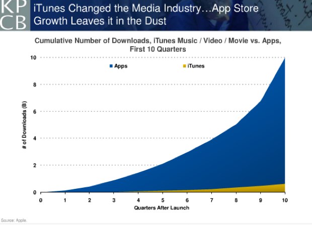 This second slide shows why iTunes needs to be renamed to simply the App Store. There have been 10 billion apps downloaded from iTunes versus only about 624 million songs. ‘Nuff said.