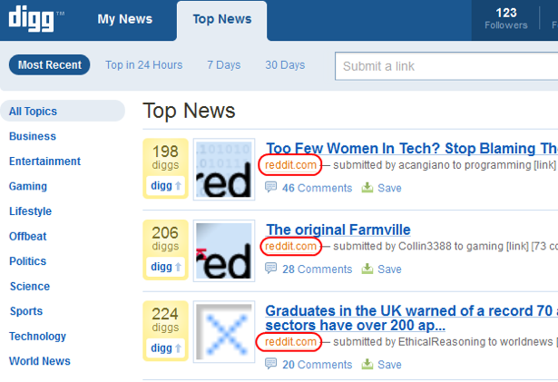 The consensus among former Digg users is that removing RSS submissions is a good move, and that V4 essentially turned the site into a “glorified RSS reader.” As the objective of a content aggregator is to filter the news and separate the signal from the noise, the “treating all publisher feeds as equal” model simply did not work.