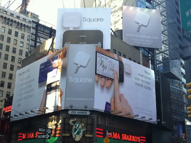 Square, which just raised $27.5 million in new funding, has steadily gained traction as a simple payments option for small businesses and is processing millions of dollars a week in transactions. This billboard should push that number upwards.
