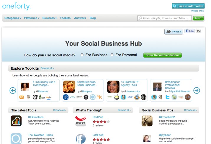 But interestingly, after nearly two years, Oneforty has found a specific target market for its products—business users. As more businesses, both enterprise, large and small, look to incorporate social media into their marketing and PR efforts, these companies are also looking to spend money on expertise, services and tools for these strategies. And Oneforty has now become a destination for business users.