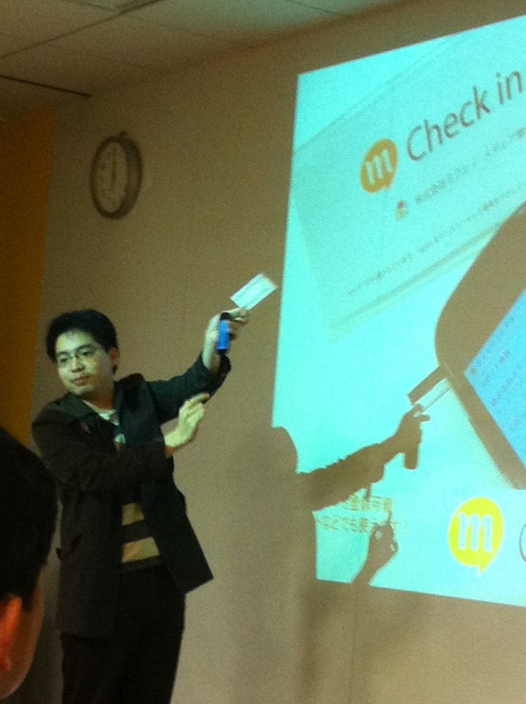 Mixi engineer Kyosuke Inoue demonstrates Mixi Real Check In in the company’s HQ in Tokyo: