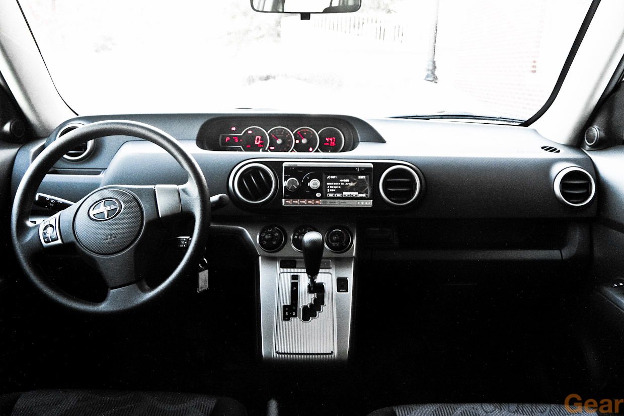 A Scion xB just found our driveway. I know what you’re thinking: it’s a boy-racer box-car. Well, you’d be right, but from first impression it’s actually pretty fun to drive. There isn’t much digitalism going on in the cabin — other than some LCD gauges, Bluetooth calling, touchscreen Alpine radio with XM, and selectable ambient lighting. But everything it offers seems to work well together, making things less inconvenient.