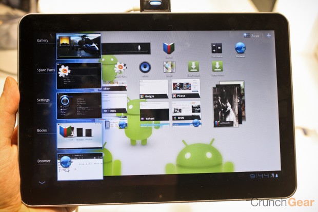 It’s hard to say whether it really runs Android 3 better than the other tablets here, but it ran it smoothly and the touchscreen was responsive. The 1280×800 display (the new standard resolution for tablets) looked sharp, though it will of course be sharper on smaller devices. The extra inch or so of vertical room makes it feel spacious compared to the iPad.