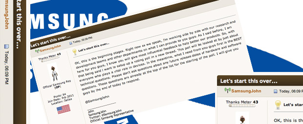 The outreach program (I suppose you’d call this an outreach program) looks to heal some of the wounds that have developed between the forum’s members and Samsung Mobile. SamsungJohn is the point-man, and this is how it starts: